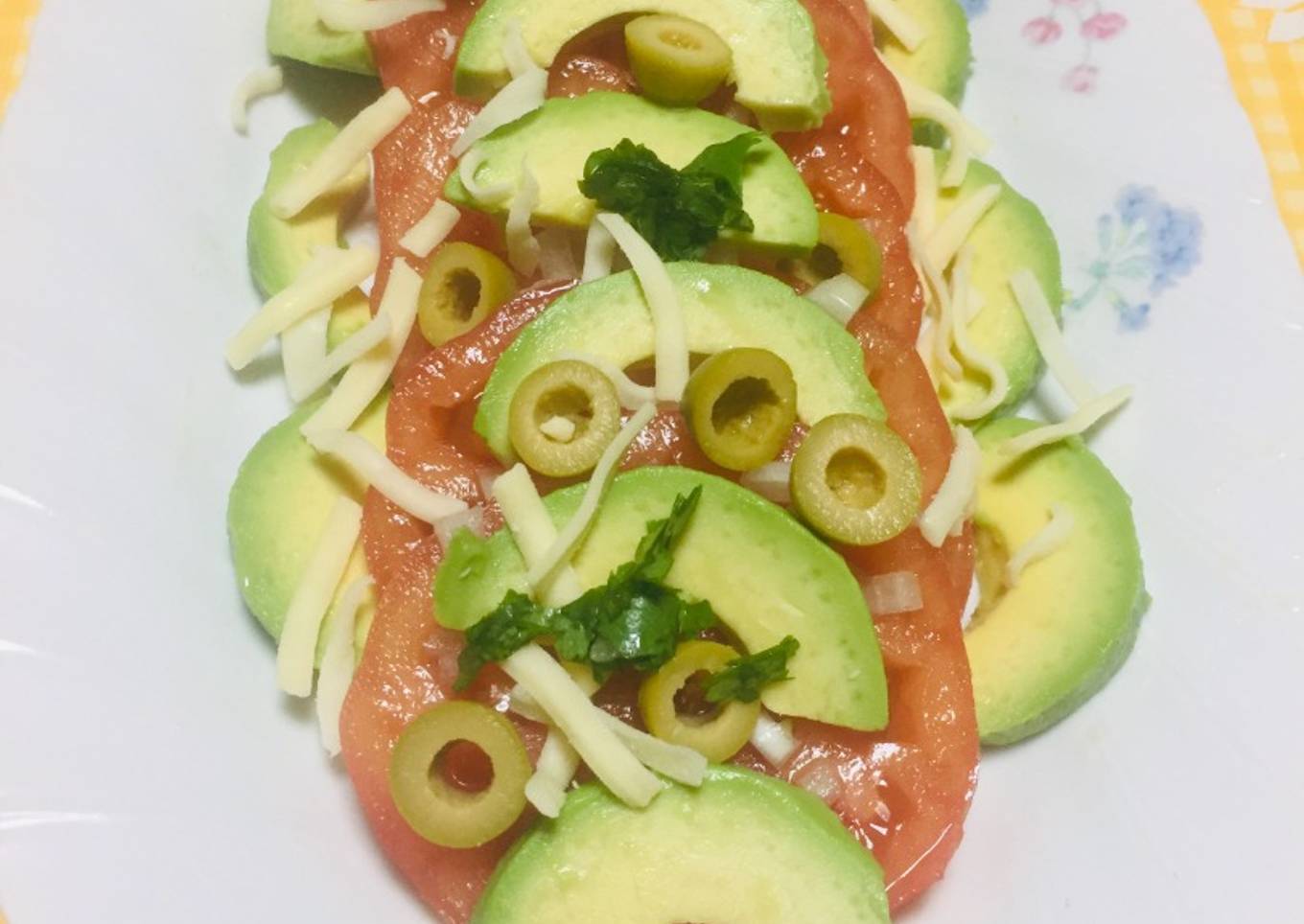 - Lavamos y cortamos en rodajas los tomates, cortamos las paltas en media luna, cuando tengamos todo cortado es simplemente acomodar en una fuente.