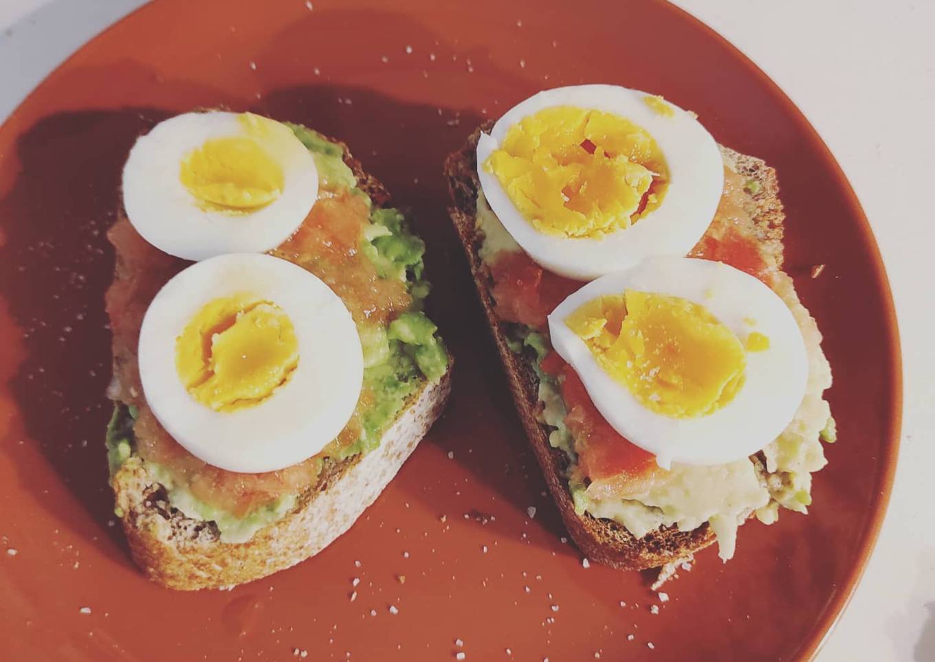 Tostadas con tomate, aguacate y huevo duro