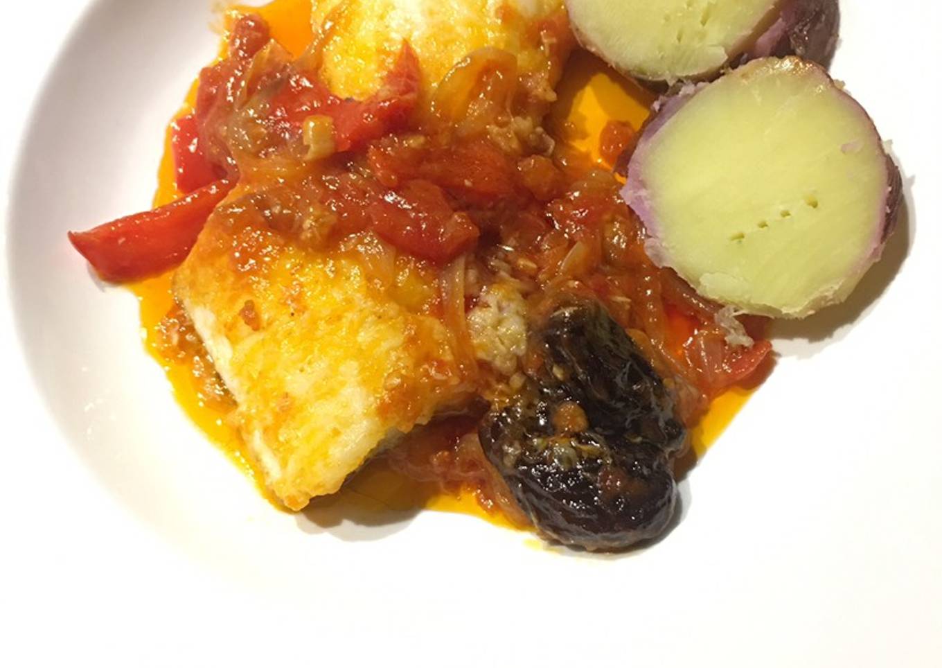 Instructions to make to make Bacalao con ciruelas pasas y batata