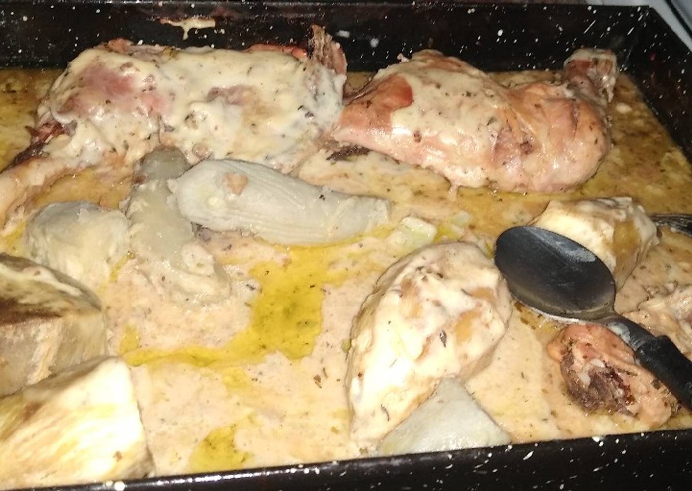 - Tapar con papel aluminio y dejar cocinar por 1hs y media masomenos un ves cocida echar salsa blanca por encima y dejar cocinar un ratito m谩s