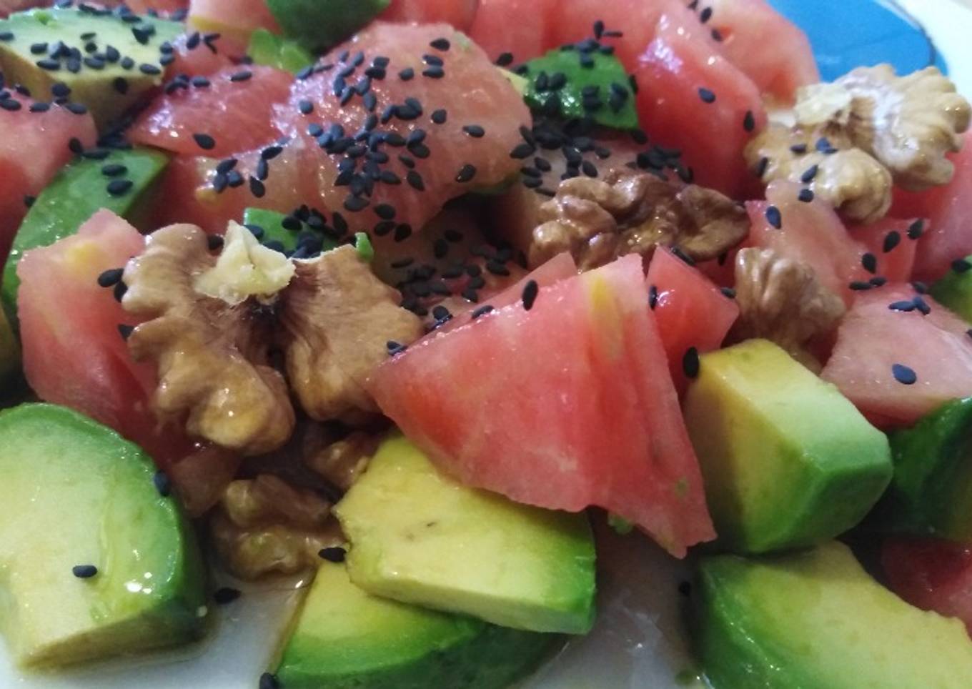 Simple ensalada ate con aguacate y tomate